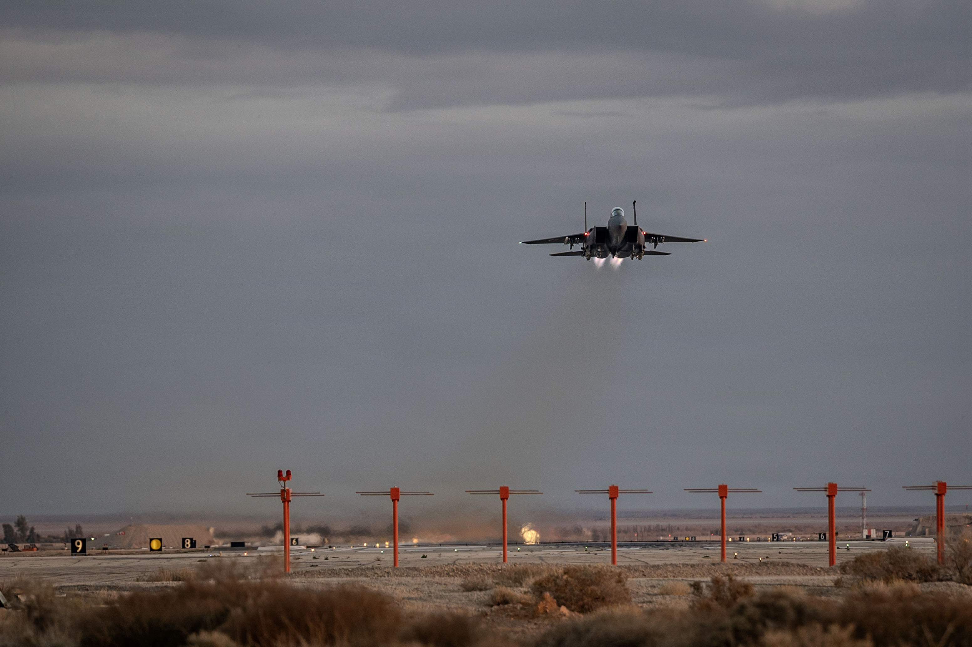 A U.S. Air Force F-15E Strike Eagle aircraft takes off from a base in the Middle East, Jan. 18, 2026. The F-15E Strike Eagle is a dual-role fighter designed to perform air-to-air and air-to-ground missions at low altitude, day or night and in all weather. (U.S. Air Force photo by Senior Airman Jared Brewer)