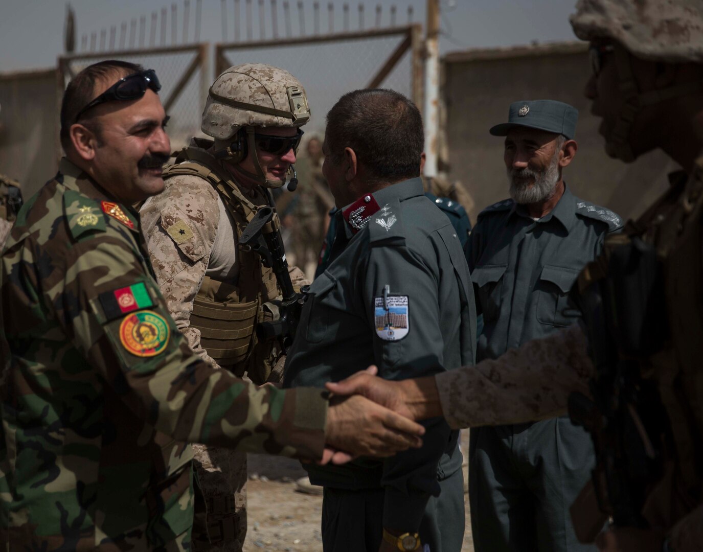 U.S. Marine advisors with Task Force Southwest conducted a train, advise and assist mission at the Helmand Provincial Police Headquarters in Lashkar Gah, Afghanistan, July 9, 2017.
