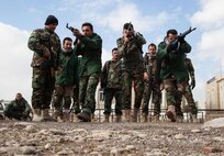 Peshmerga soldiers rehearse urban tactical movement at a training base near Irbil, Iraq, Jan. 26, 2016. (Army photo by Spc. Jessica Hurst)