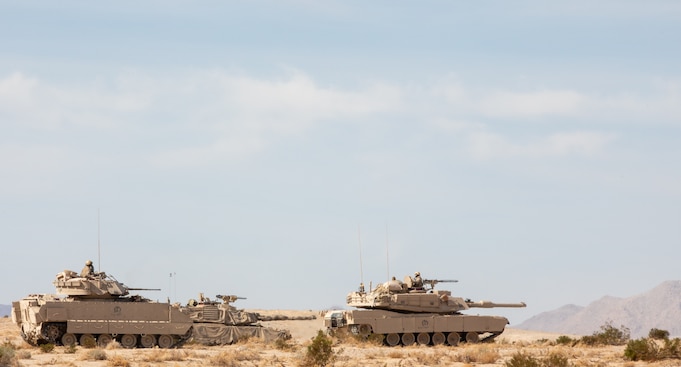 Soldiers of the Royal Saudi Land Forces (RSLF), equipped with M1 Abrams main battle tanks and M2 Bradley Fighting Vehicles, conduct force-on-force operations for the first time at the National Training Center during Rotation 26-02 at Fort Irwin, Calif., Nov. 4, 2025. Partnering with U.S. Army Central, the RSLF, and 3rd Security Forces Assistance Brigade, will integrate with 2nd Brigade, 1st Cavalry Division to improve interoperability and operational effectiveness in a tough, realistic environment. (U.S. Army photo by Staff Sgt. Devon Jones)