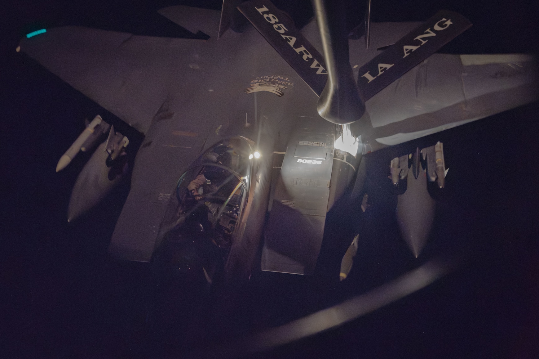 U.S. CENTRAL COMMAND AREA OF RESPONSIBILITY (Dec. 19, 2025) A U.S. Air Force F-15E Strike Eagle aircraft receives fuel from a KC-135 Stratotanker aircraft during Operation HAWKEYE STRIKE over the U.S. Central Command area of responsibility, Dec. 19, 2025. (U.S. Air Force Photo)
