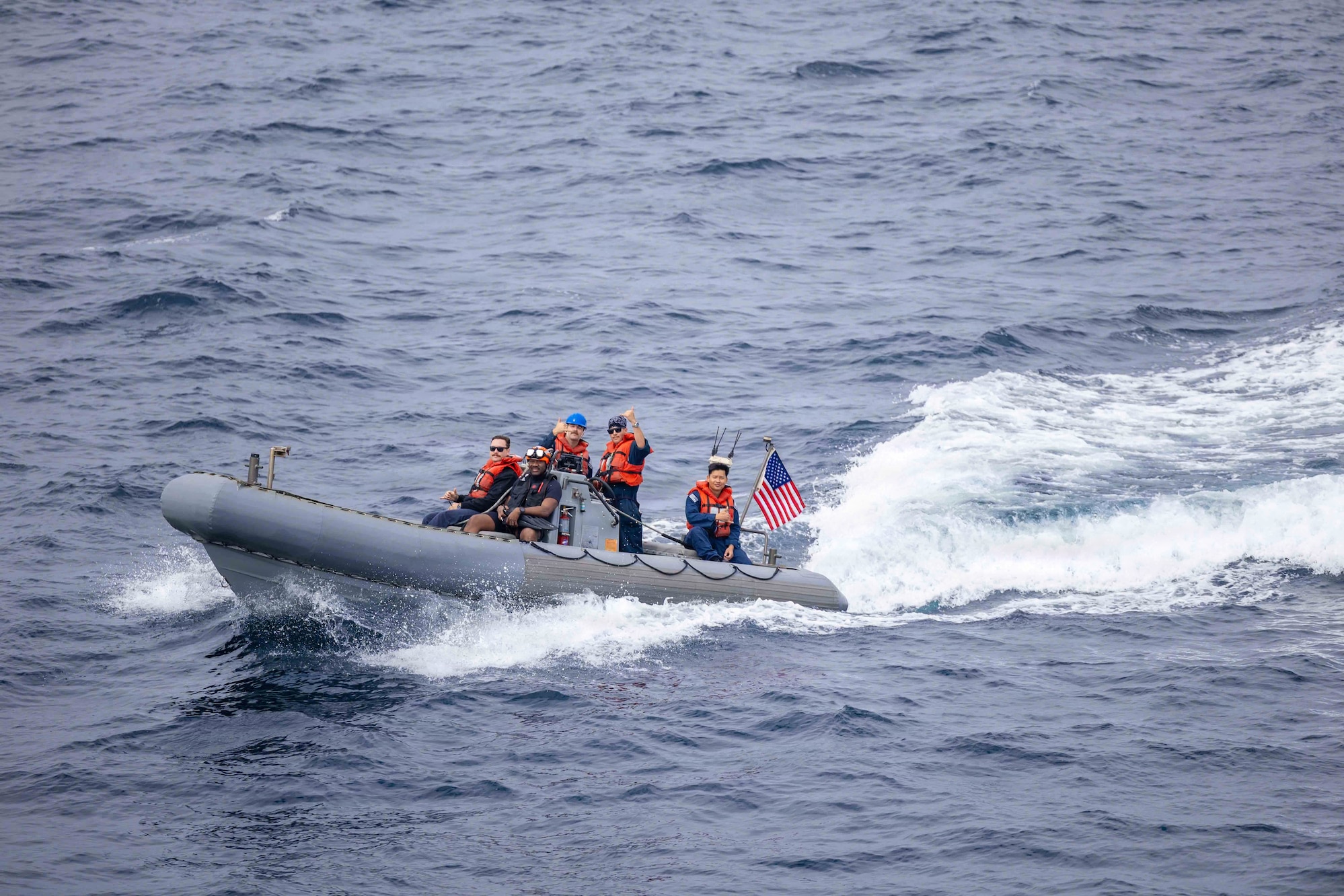 ARABIAN SEA (Jan. 29, 2026) U.S. Sailors, assigned to Arleigh Burke-class guided-missile destroyer USS Spruance (DDG 111), conduct small boat operations in the Arabian Sea, Jan. 29. Spruance is deployed to the U.S. 5th Fleet area of operations to support maritime security and stability in the U.S. Central Command area of responsibility. (U.S. Navy photo by Mass Communication Specialist 2nd Class Jordan Steis)